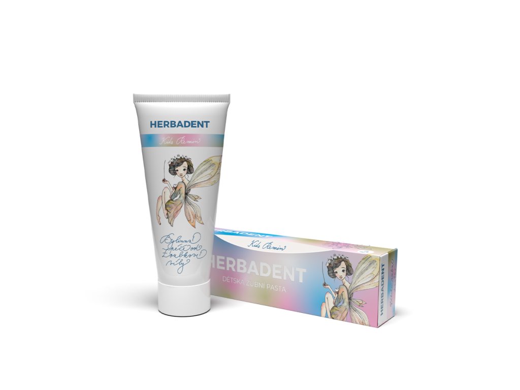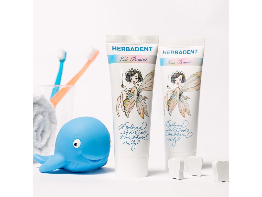 Bylinková zubní pasta se zoubkovou vílou je speciálně vyvinuta pro mléčný chrup. Jejím základem je léty ověřená receptura HERBADENT ze sedmi léčivých bylin, která pečuje o zdraví dásní a celé ústní dutiny. Pasta je obohacena o hydroxyapatit, přirozený materiál zubní skloviny, díky kterému posiluje a remineralizuje citlivou dětskou sklovinu.