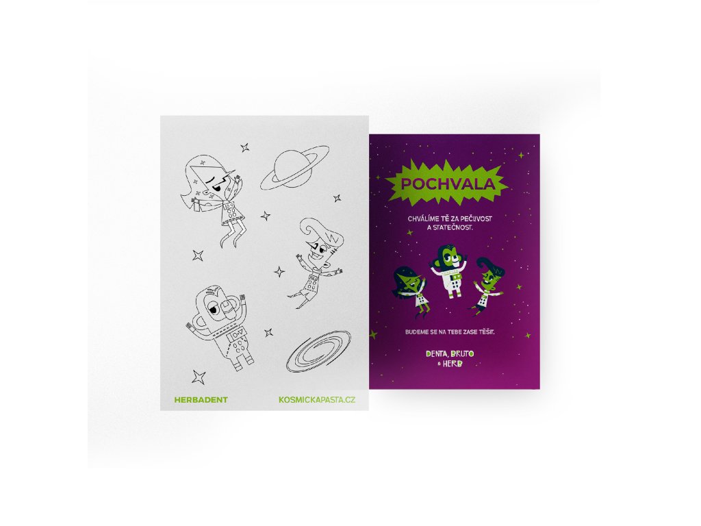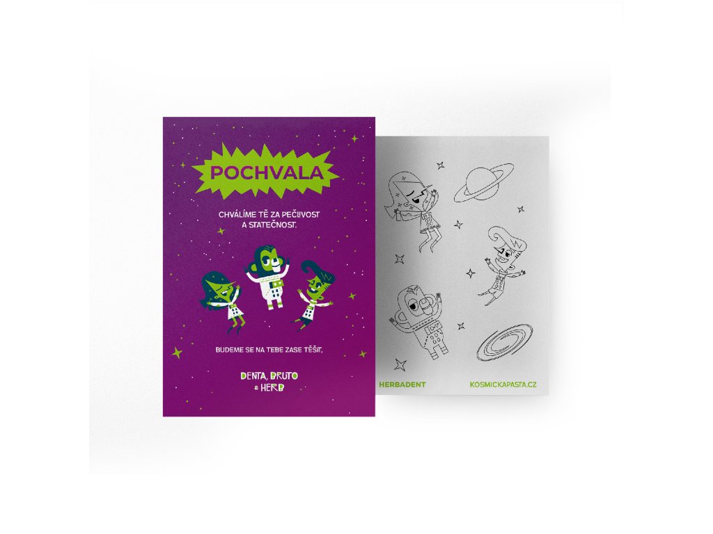 Veselý motiv s vesmírným dobrodružstvím a milá slova potěší všechny vaše dětské pacienty.